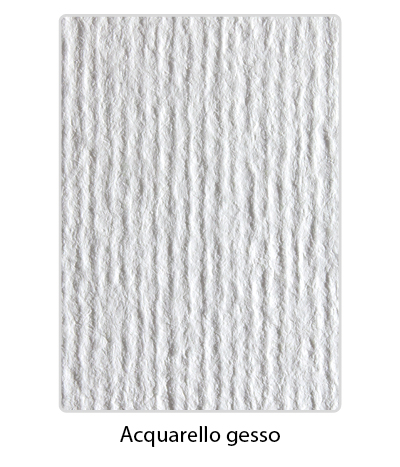 Het Acquerello Gesso is een ongecoate papiersoort met viltmarkering. De viltmarkering is een fijne, evenwijdige lijnenstructuur aan beide zijden van het papier.