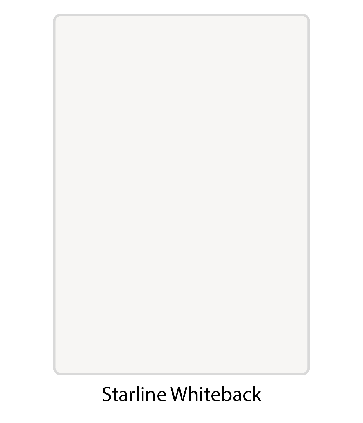 Starline Whiteback is een GC1 karton met mat gestreken voorzijde en licht gestreken witte achterzijde. Deze soort is een iets mindere kwaliteit dan het Invercote Creato maar geeft voor heel veel producten een uitstekend resultaat.